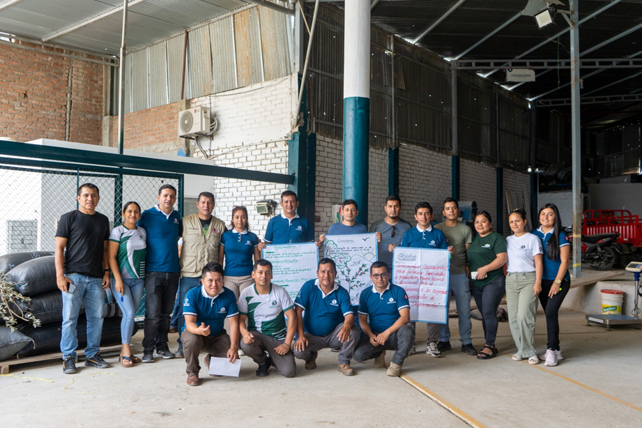 Furthermore, the aim was to identify actions and strategies to be applied throughout the entire coffee production and primary processing process for all staff members of the APROCASSI Cooperative. Carlos Román Jerí from Terra Nuova, Angel Majuan García from Aprocassi, Isaí Reátegui Sánchez and Jhoseari Fernández, a consultant from Practical Action, acted as facilitators, shaping and guiding the learning process.