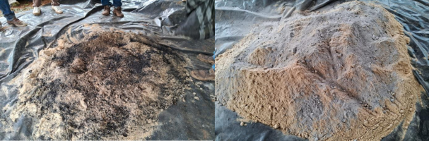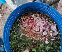 En las imágenes residuos orgánicos y líquidos para preparar las innovacionesagroecológicas.