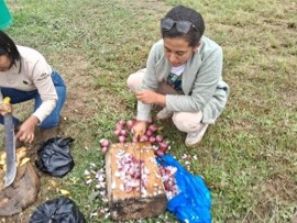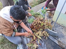 Primero en el bosque recogen los residuos orgánicos, seguidamente, las hojas, ramas y tallos recogidos son colocados sobre una base de plástico y de forma manual se seleccionó, clasificó y se desmenuzó la materia orgánica, esto permitió un trabajo de equipo, más aún, reconociendo los rasgos funcionales que tiene cada estructura vegetal en descomposición.